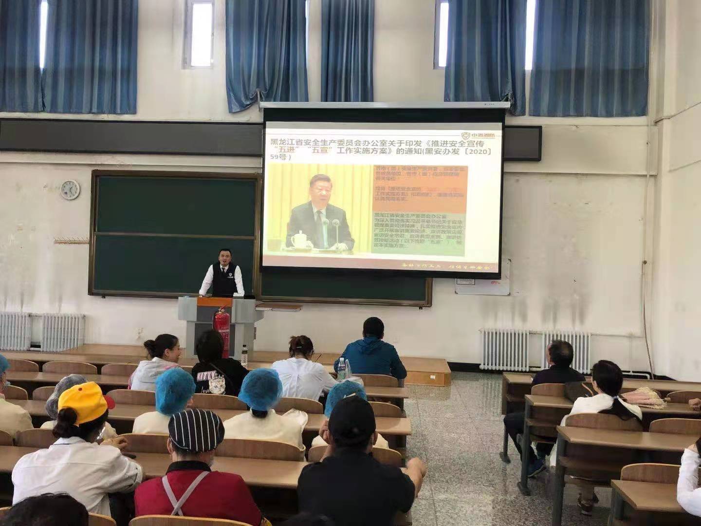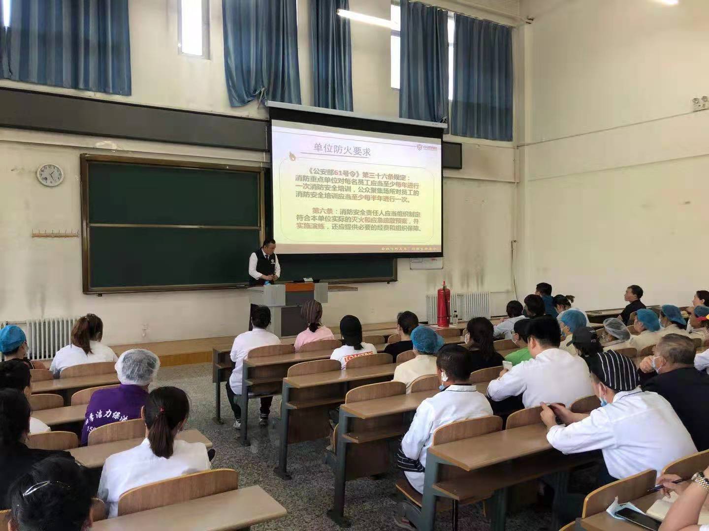 为了加强消防安全管理、普及安全消防知识, 2021年5月18日下午,保卫处组织了安全知识讲座,特邀请黑龙江省中消消防知识宣讲中心的王生彬教官开展了“消防安全知识专题培训”宣传讲座活动。食堂管理人员和员工代表等共计87人参加了此次培训讲座。