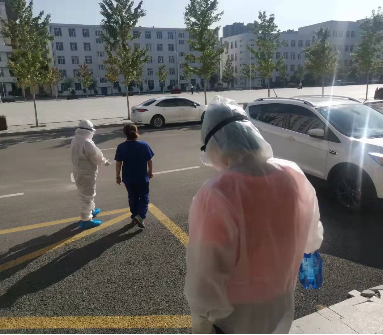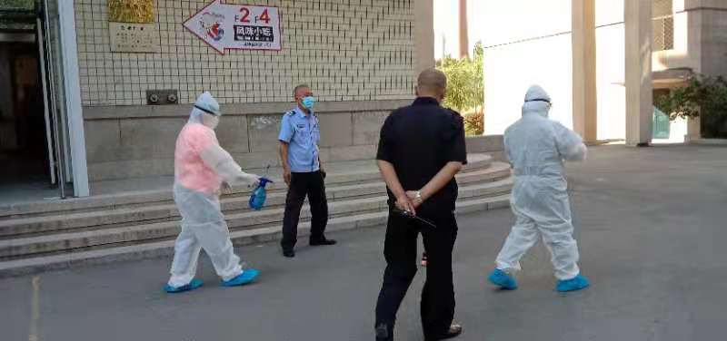 校医院和保卫处人员将相关人员带至培训中心隔离点,后勤管理处安排专人负责对教学楼入口现场进行消杀和封闭