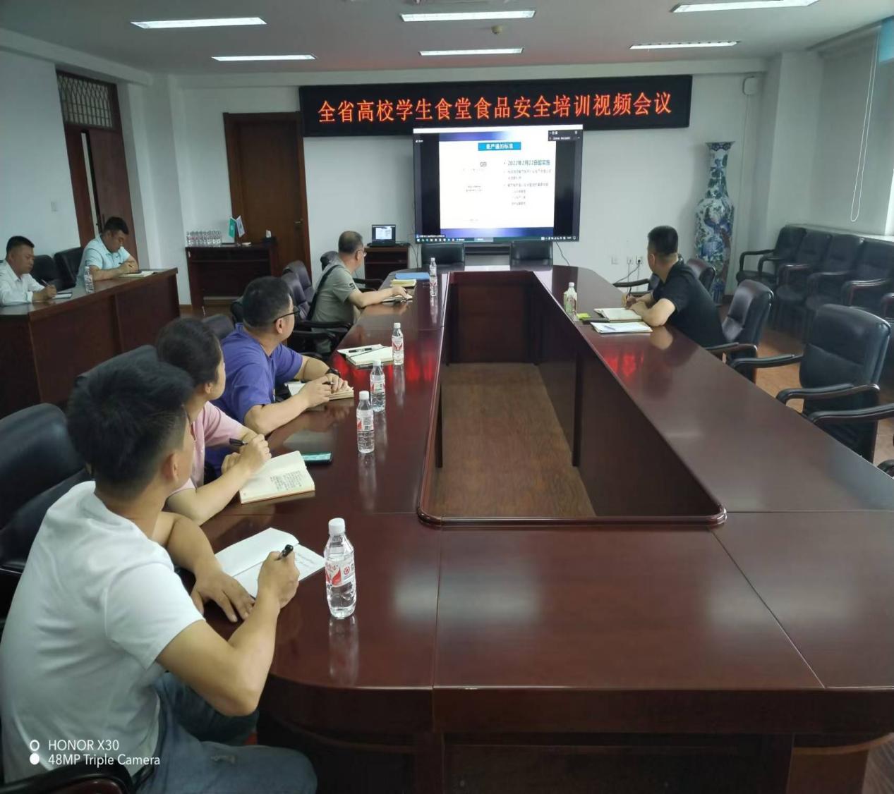 8月22日下午,省教育厅、省市场监督管理局联合组织召开了全省高校学生食堂食品安全培训视频会议。副校长黄强、后勤管理处处长徐洪政、副处长任立权、饮食服务中心负责人周仁锋及食堂相关管理人员线上参会。