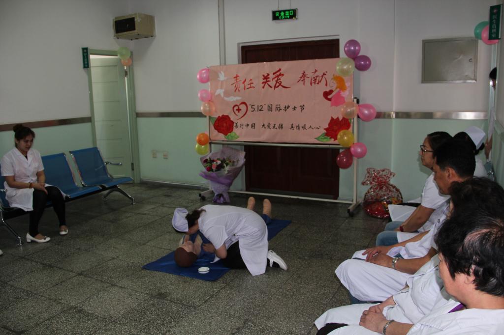 随后,校医院的护士向前来参加庆祝活动的各位领导展示了急诊急救和心肺复苏操作流程,整套动作技术熟练,一气呵成。校医院还开展了丰富多彩的联欢活动,除了异彩纷呈的各种小游戏,护士们还表演了自编自导的三句半《护士颂》,活动现场充满了欢声笑语,气氛热烈。